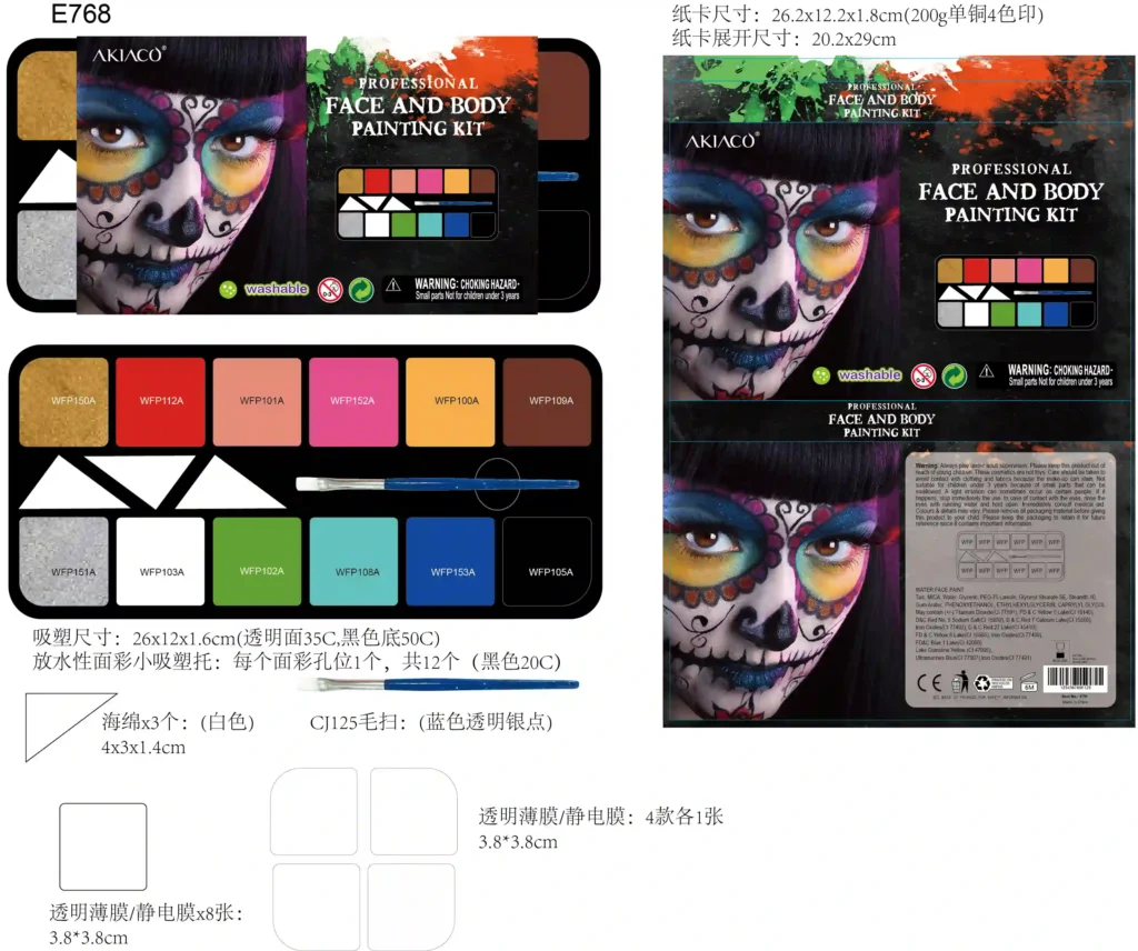 We are a professional cosmetics manufacturer dedicated to creating safe and creative makeup kits since 1982. Over the years, we’ve expanded our product line to include Halloween SFX makeup such as fake blood, liquid latex, scar wax, and professional face paint kits — designed for fun, performance, and safety.